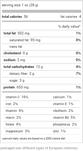 One ounce (28 grams) of chestnuts contains 12 grams of carbohydrates, with only 2 grams coming from fiber. This amount is significantly higher than other nuts commonly eaten on the keto diet such as almonds or macadamia nuts.